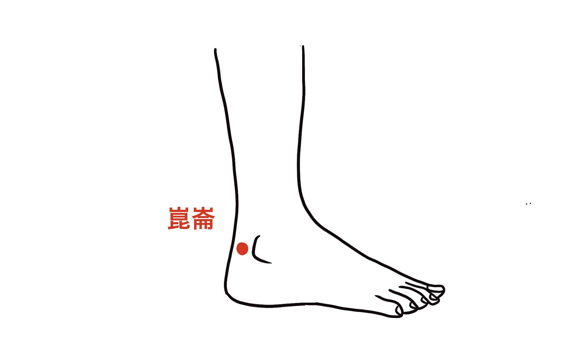 アキレス腱と外くるぶしの間の崑崙(膀胱経)